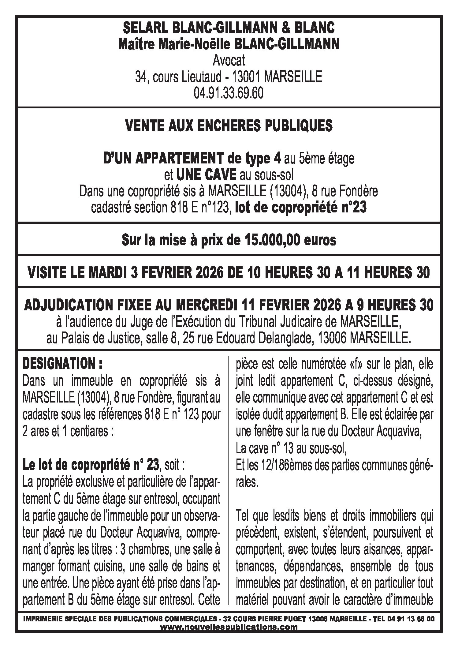 • Annonces ventes aux enchères